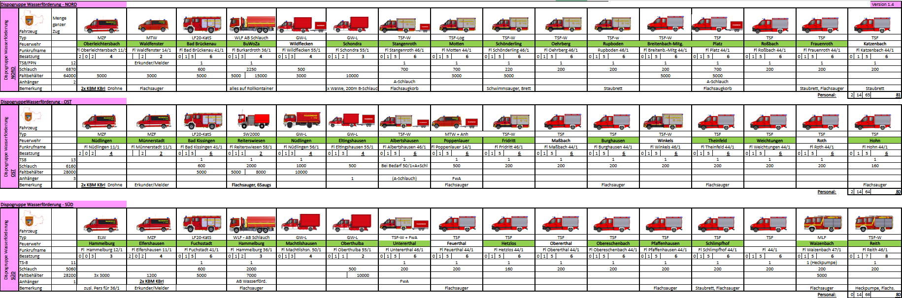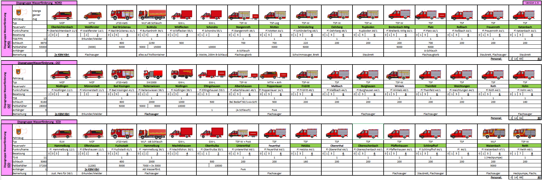 Die Dispogruppe Wasserförderung besteht aus 16 Fahrzeugen mit ca. 80 Einsatzkräften